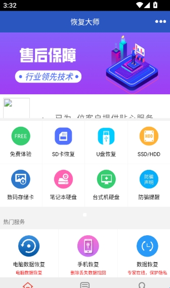 恢复大师是由陕西浩弘瑞腾网络科技有限公司设计的一款移动设备数据恢复类软件,当用户有了该软件后便可以在该软件中快速的进行手机数据恢复,帮助用户快速的找寻到所丢失的文件,而且该软件还为用户提供了恢复资讯的功能,可以让用户在不确定是否能完全恢复时询问客服人员,专家会为用户给出最专业的建议和方案。确保用户可以找寻到自己的数据再下单。如果有对这款软件感兴趣的小伙伴,那就快来下载试试吧!