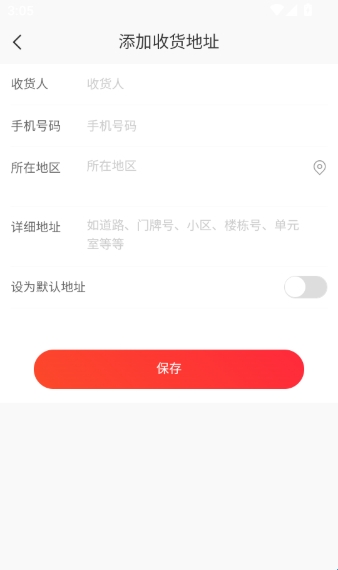 6、最后进入“添加收货地址”填写界面,输入收货人、手机号码、所在地区、详情地址后,点击“保存”按钮就完成了