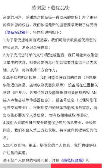 3、客户服务:优品街提供全天候的客户服务,用户可以通过在线客服、电话等方式咨询和解决问题,提供贴心的售后服务带给你更好的购物体验。