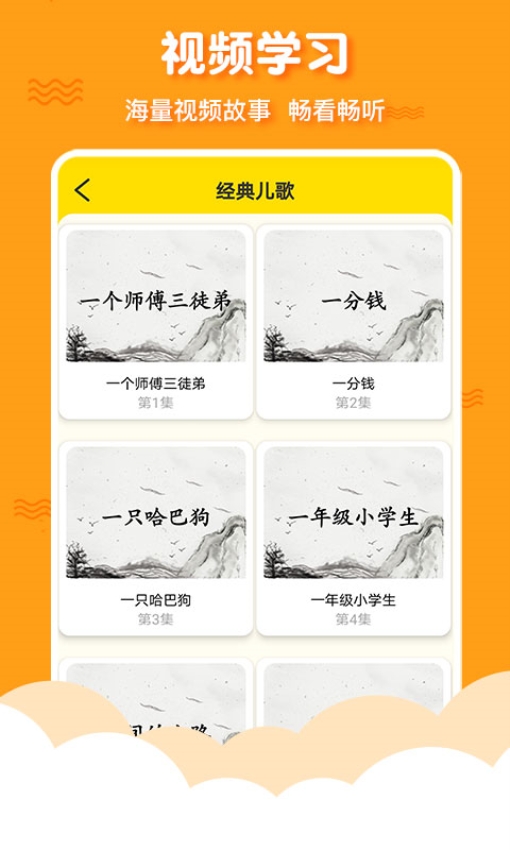 3、视频学习:也可以让孩子来选择经典的儿歌视频进行学习,随心观看学习国学文化,随时观看。