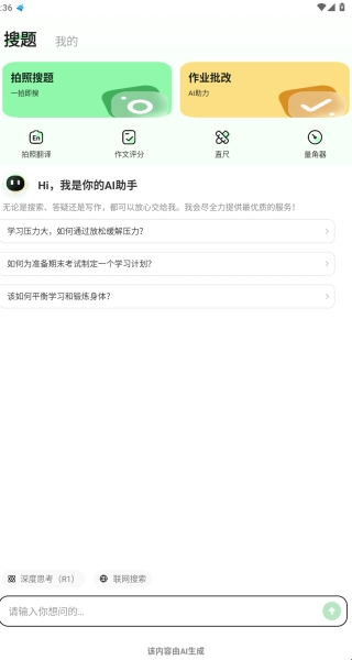 3、AI搜题:这里还提供了线上的AI搜题,用户可以拍照搜题,多种搜题方式都可选择。
