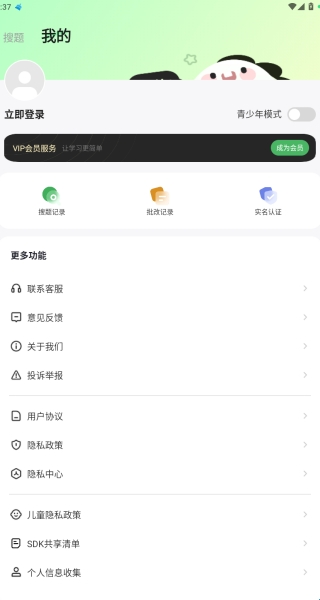 4、打开我的,登录后,就可以看到自己的搜题记录、批改记录。