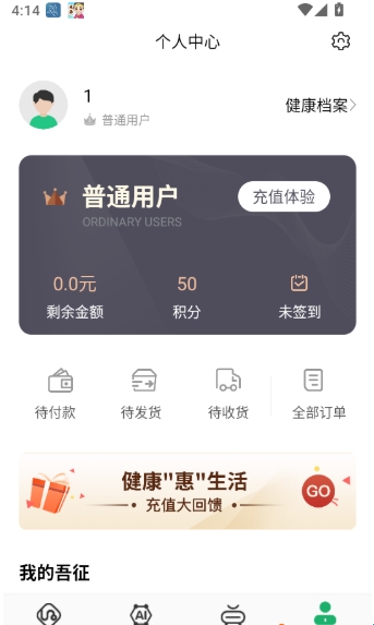 1、获取积分,可通过完成日常任务以及每日签到来获取一些健康积分奖励。