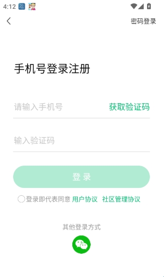 4、在手机号登录注册界面,输入手机号与验证码后点击“登录”按钮进入程序