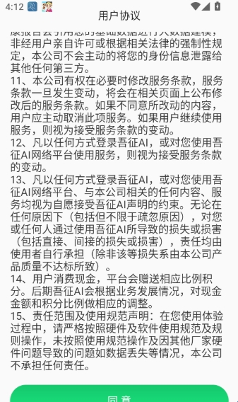 3、然后出现“用户协议”内容,点击“同意”按钮进入下一步操作
