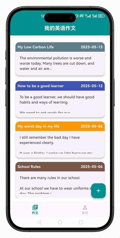 2、我的作文:所有自己创建编辑的作文都能记录,在应用中可以一目了然,方便用户查看;