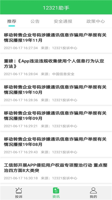 4、点击资讯,可以查看各类官方资讯,公告和政策