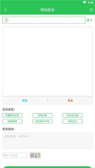 2、点击网站投诉,可以输入违规网站链接,进入后进行截图,选择违规类型,添加描述即可提交