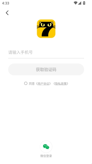 4、在登录界面,输入手机号,获取验证码,即可登录。