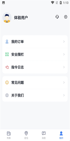 4、点击我的卡用查看订单情况、安全围栏、指令日志等等。