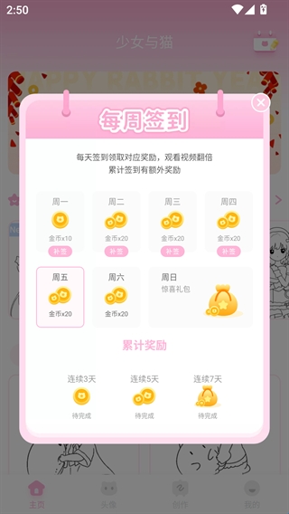2、每天打开APP可以签到,每次签到能领取一些奖励;