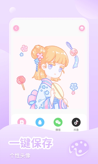 6、作品设置:完成绘画的作品可以一键保存和设置,可直接设置为qq、微信、抖音等头像;