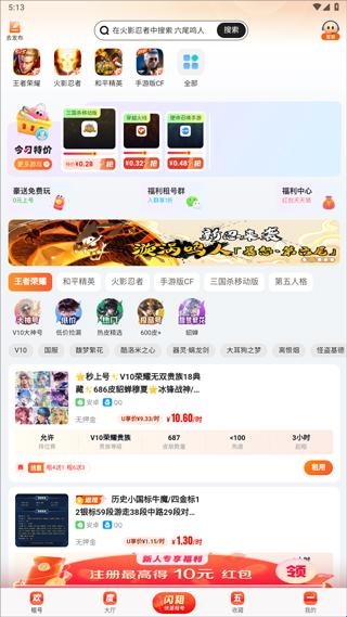 2、涵盖各种分类热门游戏,并且平台新人注册还有惊喜红包,租号享受更多优惠,轻松秒变大神