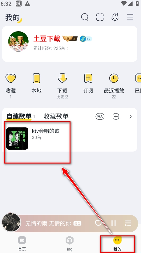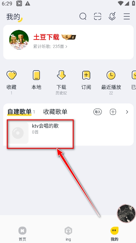 8、返回点击我的,可以看到我们喜欢的歌曲都在刚刚创建的歌单里啦。