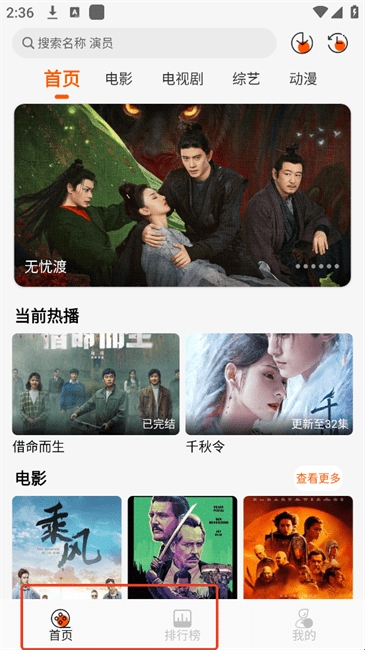 2、接着打开app在【首页】推荐/搜索或是在【排行榜】专栏中找到感兴趣的影视剧并点击进入