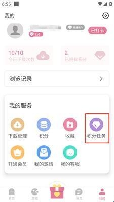 2、随后点击下图中的【积分任务】,根据任务需求做完就可以获得积分了。