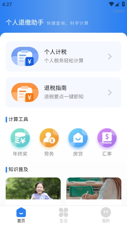 个人退缴助手是一款专业的税务计算软件,该软件可以有效的帮助各位用户进行快速且准确的税额计算,而且还为用户提供了其他强大的计算功能,像是年终奖计算,房贷计算,汇率计算等多场景计算功能,还有诸多科普知识等用户前来学习和阅读。如果有对这款软件感兴趣的小伙伴,那就快来下载体验一番吧!