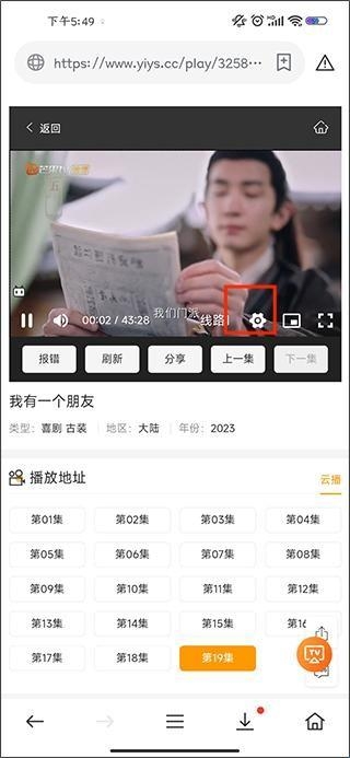 3、进入视频播放页面后点击视频空白处然后点击齿轮标志