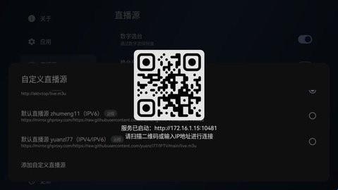 5、然后用手机扫描二维码,或者在手机浏览器中输入IP地址进行连接,连接成功后,导入直播源就可以了。