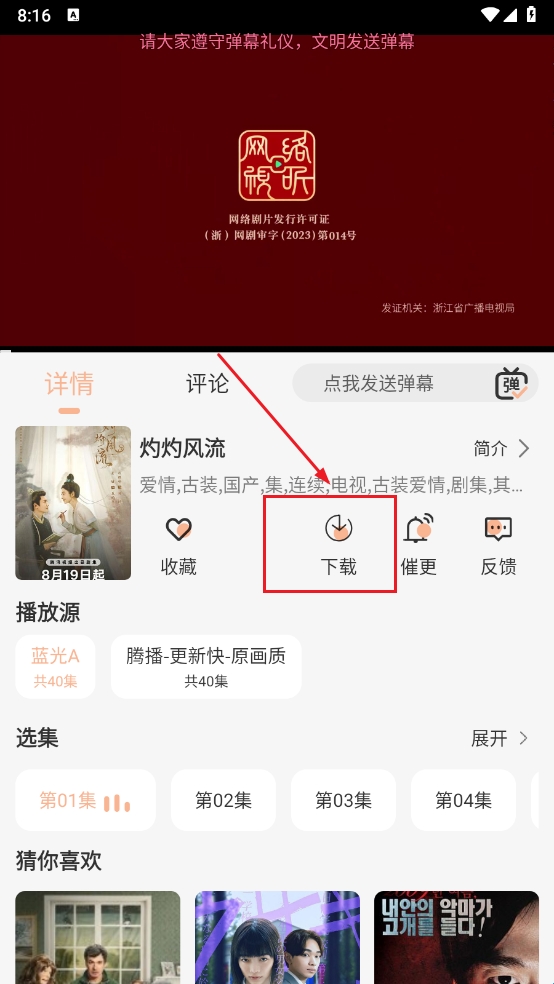4、在这个页面上,您可以找到一个名为“下载”的选项,请点击它以展开剧集列表。