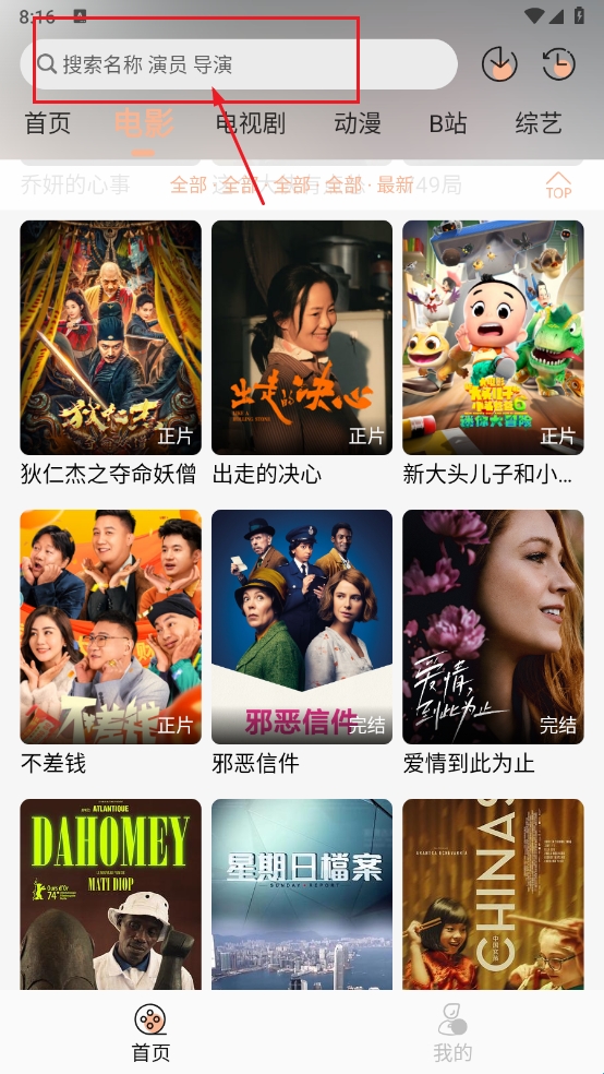 2、接着,在上方的搜索栏内准确地输入您希望下载保存的电视剧作品的全名或关键字。