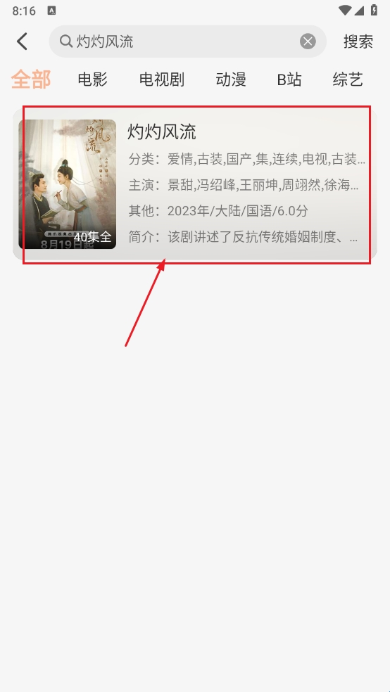 3、点击进行“搜索”操作,此时系统将自动跳转至该电视剧的详细信息展示界面。