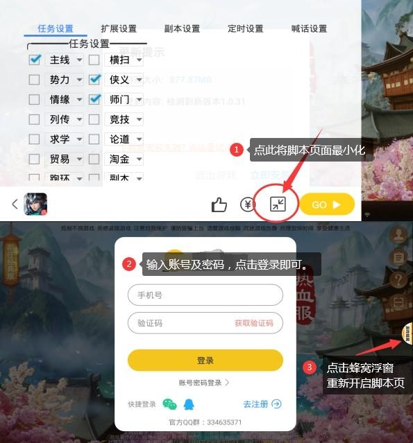 5、最后选择您想要的功能,设置完成后点击 【GO】按钮就可以开始挂机了