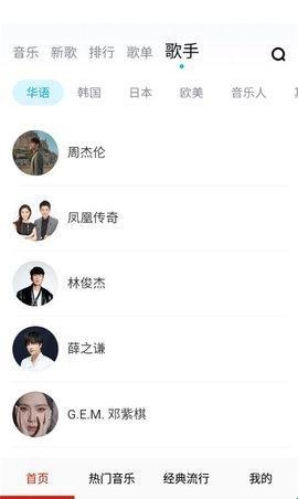 4、歌手里面,肯定会有你喜欢的偶像,选择可以直接播放他的歌单