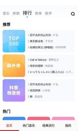 3、查看排行,主要分为top500、飙升榜、抖音热歌榜等