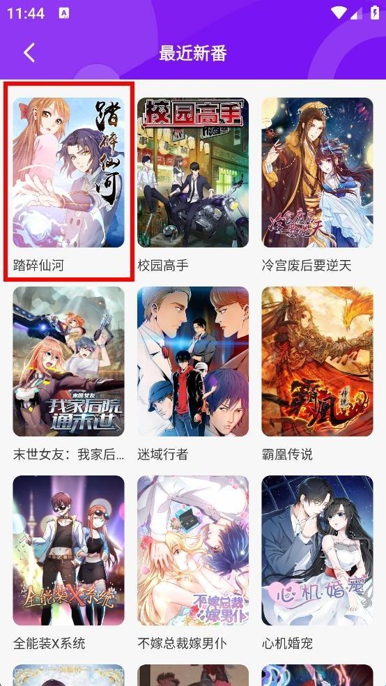 3、最近新番列表中,选择动漫,如踏碎仙河,点击进入动漫详情。