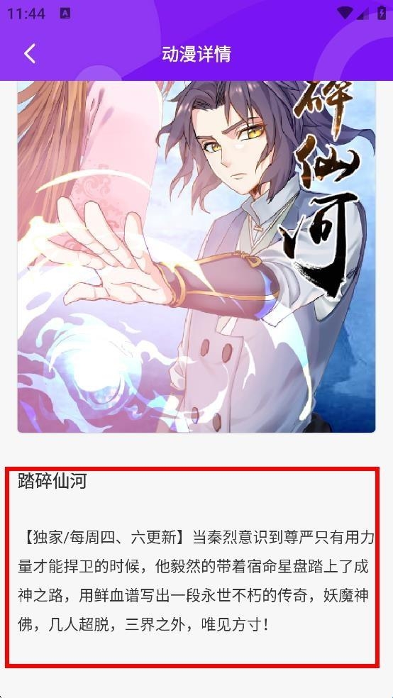 4、最后在动漫详情页,可查看踏碎仙河的详细介绍等内容。