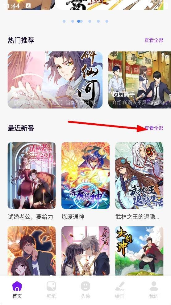 2、进入首页后,点击最近新番旁的查看全部,进入最近新番列表。
