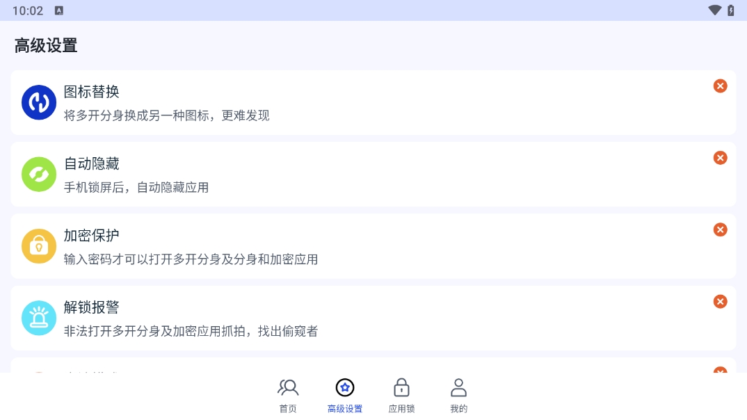 还可以对需要的应用来一键伪装隐藏,替换应用图标就可以轻松隐藏起来,随时替换不同的图标。