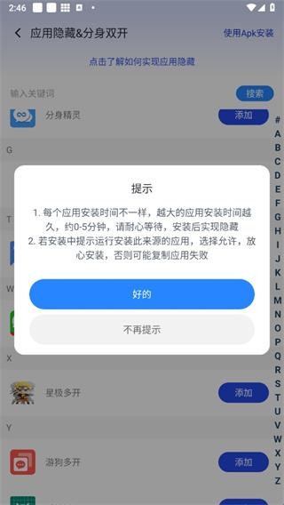 3、超小体积包,支持快捷图标,支持自定义名称,多开个数无上限;