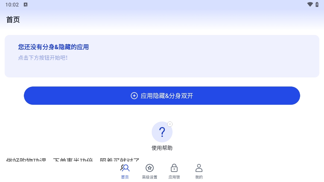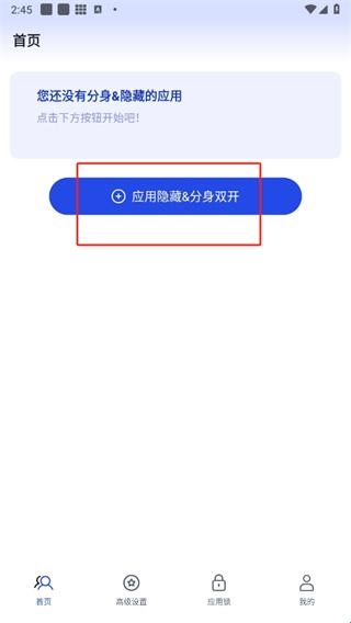 1、首先打开多开分身管理大师app,进入到首页中后点击【应用隐藏&分身双开】;