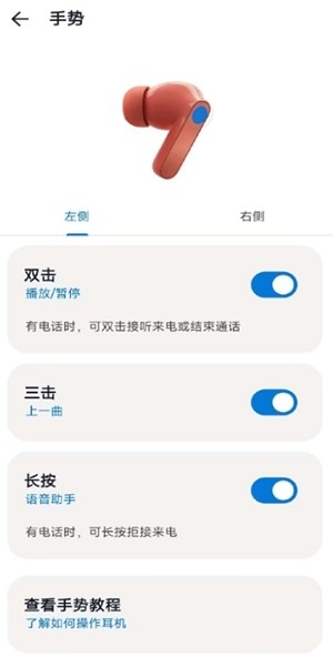 2、手势控制:允许用户通过触摸耳机表面的手势操作来控制播放/暂停、跳过曲目、接听或挂断电话等。