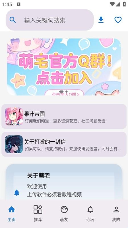 萌宅社区游戏库是专为手游玩家准备的一款集资源下载,社区交流,攻略分享等内容为一体的手机游戏盒子,在这里不论您是何种游戏的玩家,都可以找到相同爱好的伙伴,寻找心有灵犀的游戏搭子,还有超多全新的游戏资讯和攻略等您来了解。如果有对这款游戏盒子感兴趣朋友,那就快来下载试试吧!
