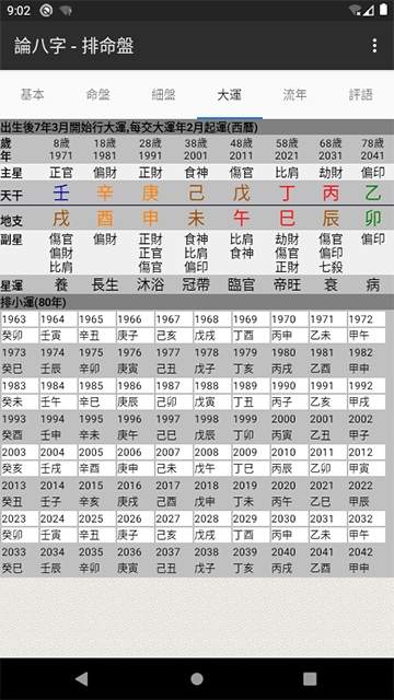 论八字排命盘是一款非常专业的八字算命软件,大家只需要在软件里面输入自己得姓名以及出生年月日就可以进行推算了,软件可详细分析出当前大运走势,帮助用户全面了解自身命理格局,同时系统还支持多种个性化的设置可以使用,大家一起来下载吧!