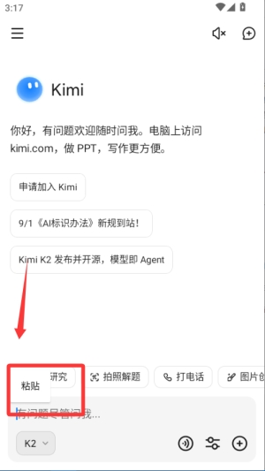 1、打开应用后输入或上传需要分析的文档,Kimi会自动解析内容并提供专业领域的解读报告。