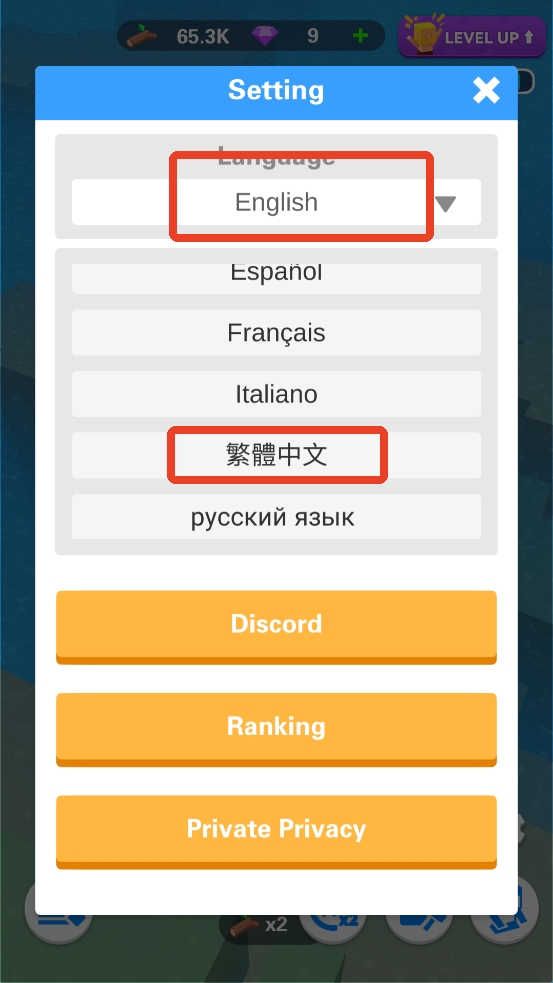 2、点击【English】,下滑找到繁体中文。此游戏没有简体中文。