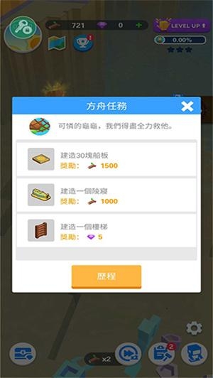 该游戏也被称为海上方舟。在游戏中,玩家可以建造木筏,通过自己的力量去海上探索,找到更多的资源,玩家可以收集木材,漂流瓶,百宝箱等资源,扩建方舟,逐渐在方舟上扩展不同功能区域,并通过拯救其他幸存者来建立人类新文明。