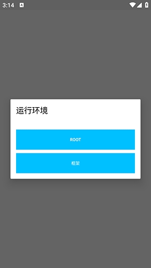 2、选择运行环境,没有root权限的用户可以选择框架进入。