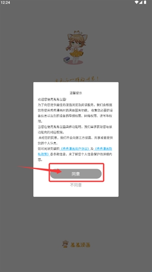 1、启动应用后,首先出现温馨提醒窗口,轻点“同意”即可继续使用。