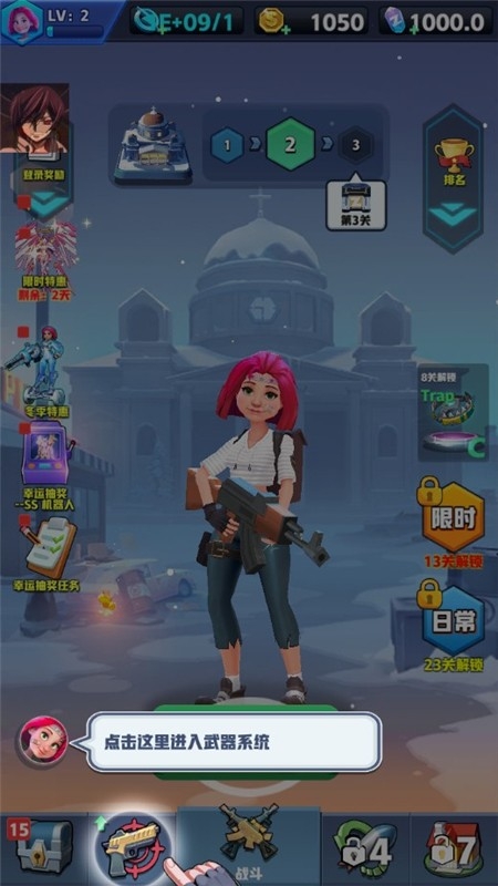 2、随着等级的提升,你有机会解锁更多的武器,这可以帮助你轻松获胜