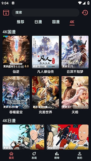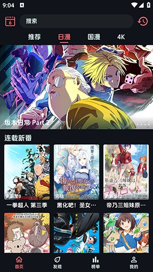 4、点击榜单提供了日番,国漫等实时榜单可以查看。