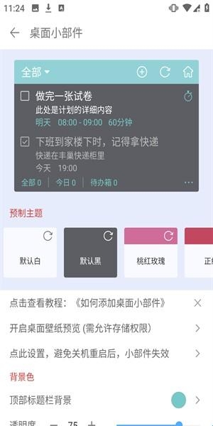 3、点击桌面清单小部件这里可以设置几日计划,设置主题、背景等等来添加到桌面。