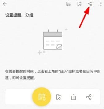 2、从便签的内容页面右上角,点击使用分享功能,就可以将便签的信息进行导出了。