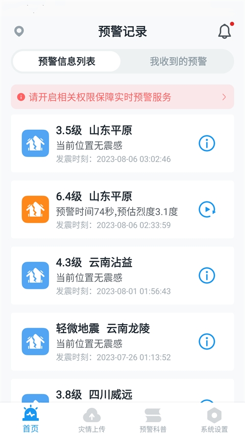 我收到的预警为实际收到的预警信息,可能存在网络延迟和APP未在后台运行导致未收到的情况