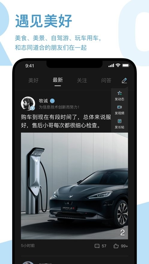 2、点击遇见,你可以在这里看到各路车主发布的动态;