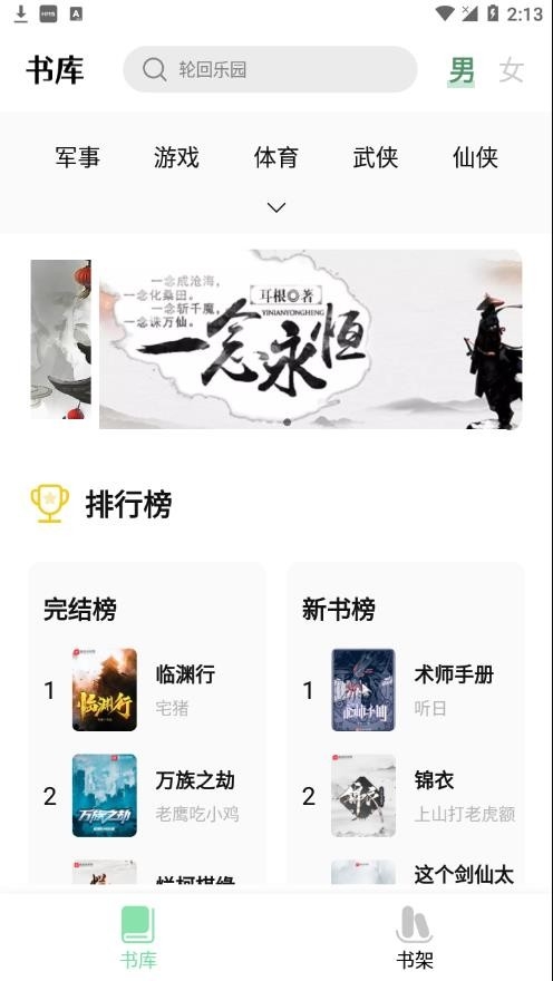 1、首次进入书香仓库app,书架上还没有小说,点击前往添加;